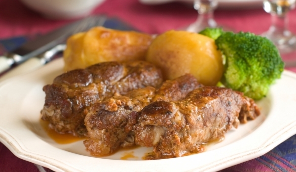 Намаслената и осолена пуйка се пълни с 3 ч. ч. трохи от стар хляб, 100г стафиди, черен пипер и 100 гр. орехи. Зашива се, завива се във фолио, пече се в тавичка върху клонки от слива, с малко вода и...