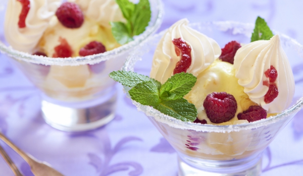 Няколко малини си оставят настрана, останалите се намачкват. Водката се затопля леко и в нея се разтваря пудрата захар. Добавя се малиновото пюре и шампанското. Десертът се слага във фризера за 4 часа...