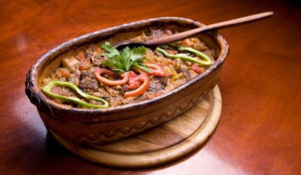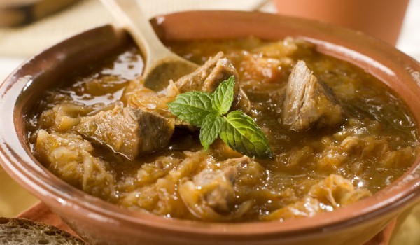 Чушките се почистват от дръжките и семенната част и се нарязват на тънки пръстенчета. Месото също се почиства и измива. След това се нарязва на хапки и към него се прибавят чушките. Налива се вода, ко...