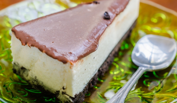 Бисквитите се смесват с разтопеното краве масло. Сместа се разпределя върху дъното на форма. Пече се 8 минути на 170 градуса, след което се охлажда. Шоколадът се разтапя на водна баня. Сиренето се пас...