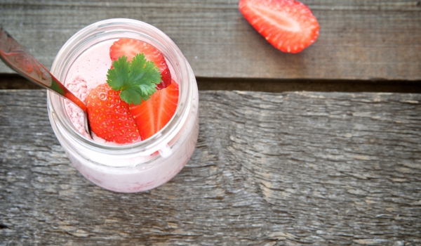 Яйцата и медът се разбиват с миксер, добавя се изварата и разбиването продължава. Добавят се ягодите и се разбива още. Разпределя се във формички и се оставя да се стегне за 4 часа в хладилника.