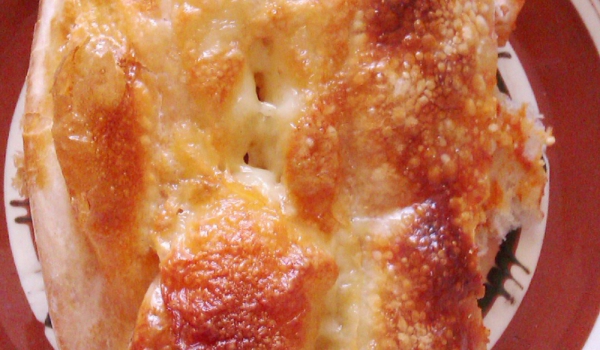 Тестото се разточва на кора с дебелина половин сантиметър и се разрязва на 10 квадрата. В средата на всеки квадрат се слага от плънката, която се приготвя от намачканото с вилица сирене, яйцата, смет...