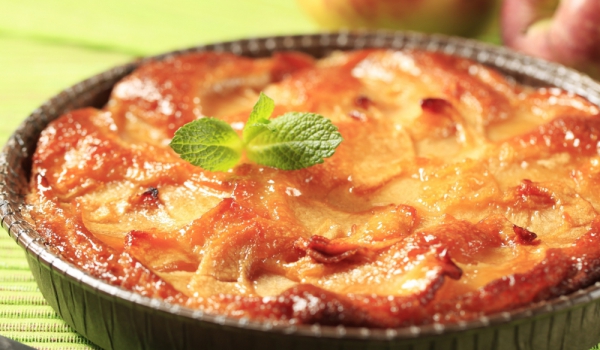 Ябълките се обелват, отстраняват се семките и плодовете се режат на ситно. Смесват се брашното, солта и бакпулверът и се замесва тесто, в което се добавят 2 супени лъжици от маслото. От захарта се отд...